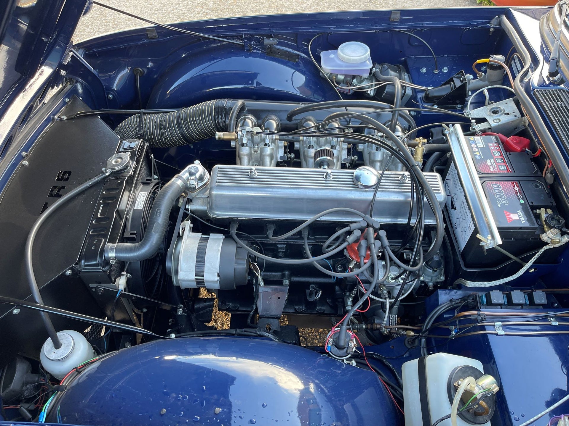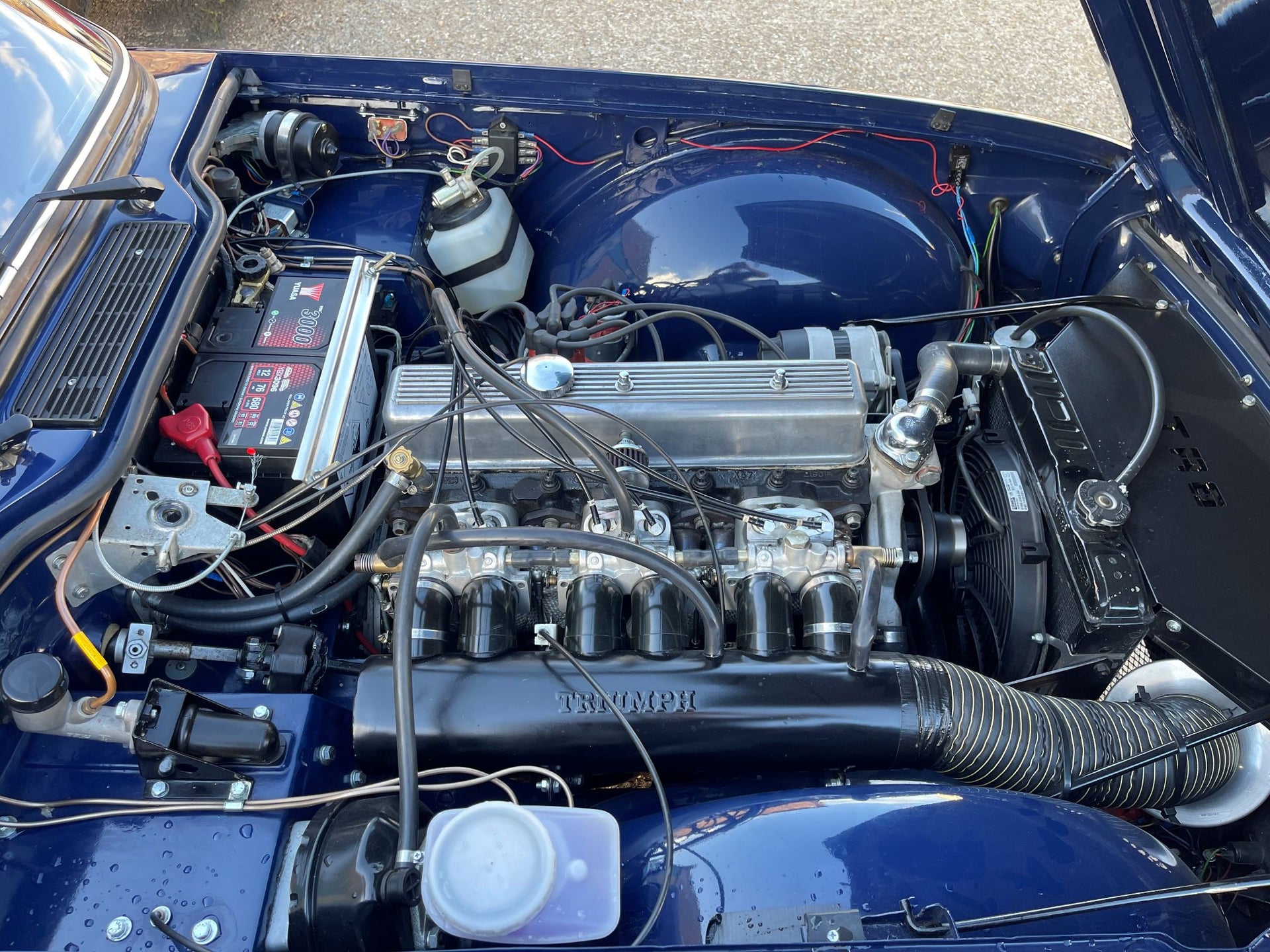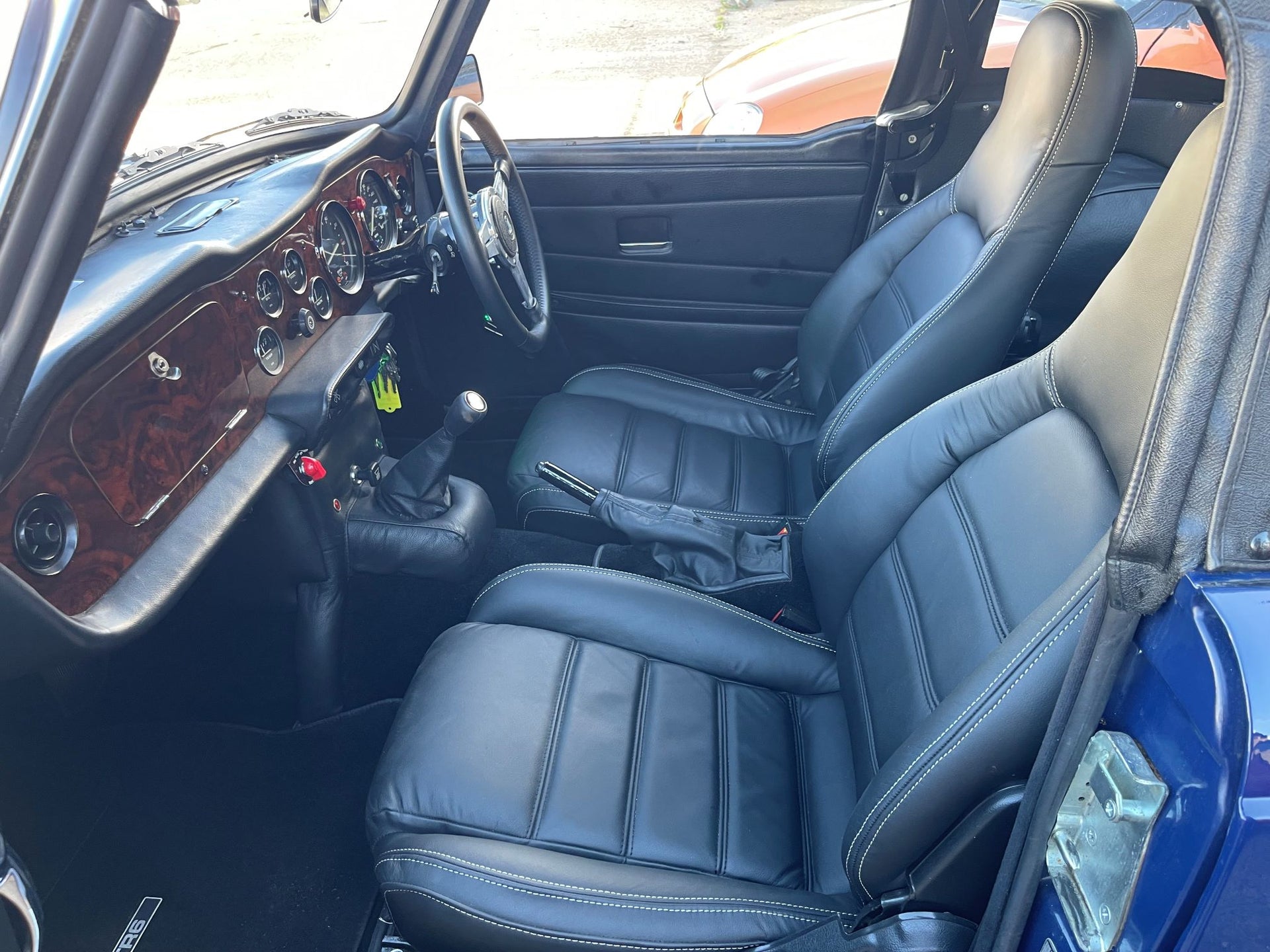 Originally body off restored in 1992, followed by a recent nut and bolt restoration and colour change between 2018-2020. Recent invoices totaling a whopping £25,500. Originally emerald green from the factory and colour changed to sapphire blue. Fantastic specification and faultless mechanically. Engine specification converted to 150bhp, +40 thou pistons, piper high torque camshaft +10 big ends and mains. 123 Ignition system, full phoenix exhaust system, cv drive shafts, new wiring loom and much more! Good underbody that is wax oiled. Chassis is good but showing some repair patches, deemed solid and strong. Chassis diff mounts have been reinforced! Huge history file and photographs documenting all parts and restoration. Bare metal respray, but unfortunately the paint is not perfect. Please see photos of paint defect areas. Very nice engine bay! The car was painted in twin pack or 2k paint. Personally, if the paint was corrected the car could be worth 22-24k. Retail price reflects the paint condition with scope to improve the paint and inturn increase the future market value. If you can see past some of the paint aesthetics, this is a very good driver's car and we can assure you that it drives very well! Ramp inspections are welcome and come with a year's free membership with the TR Register car club.