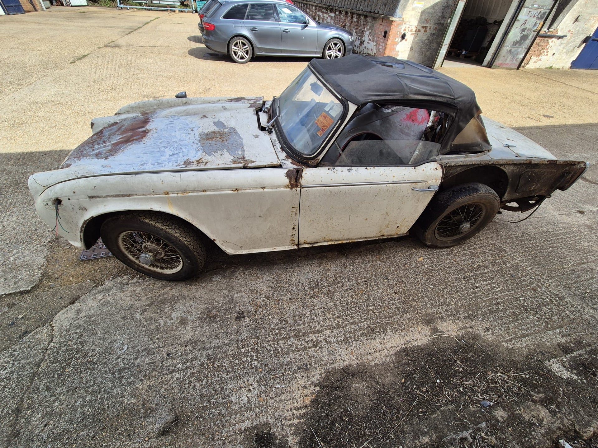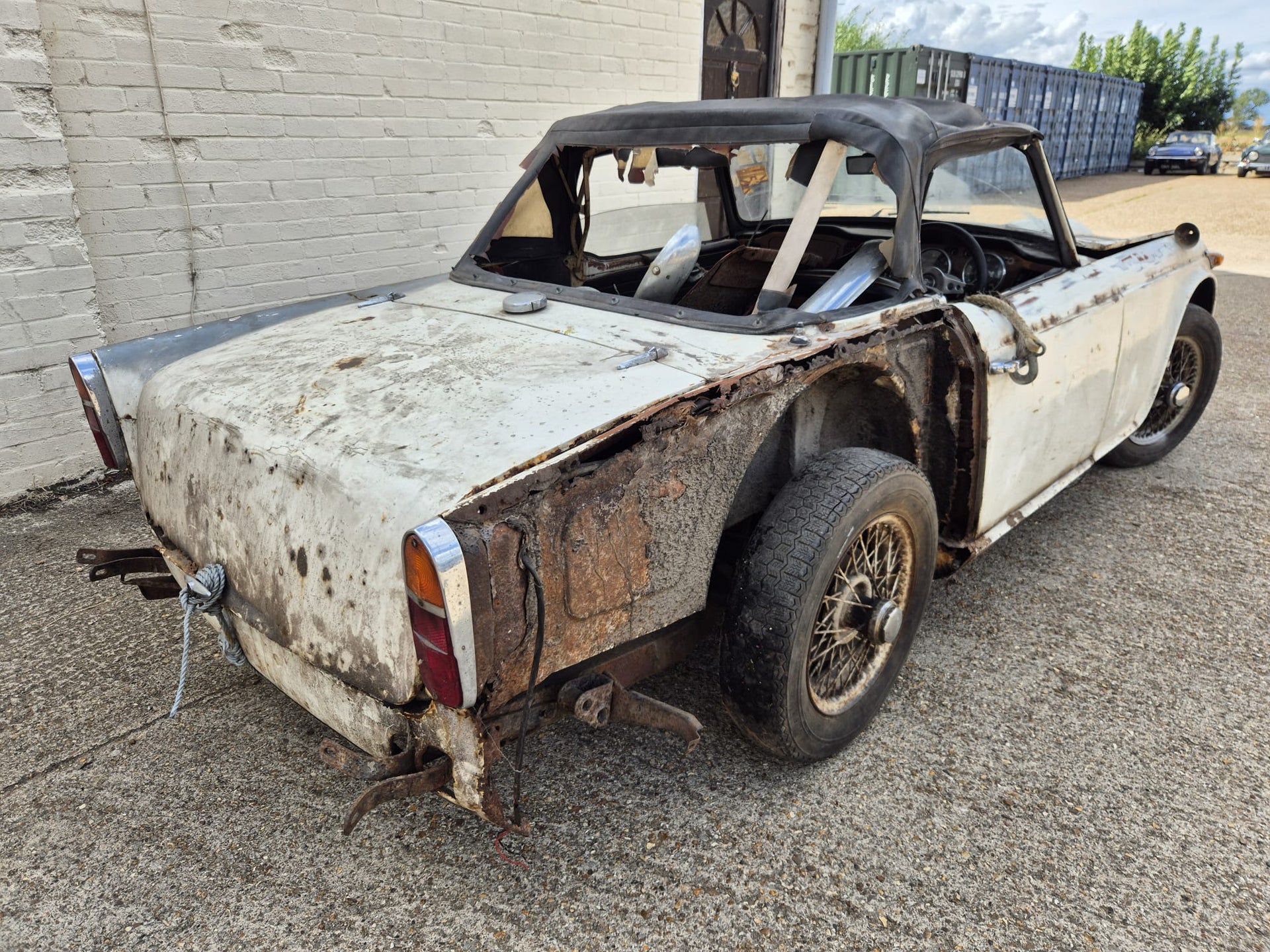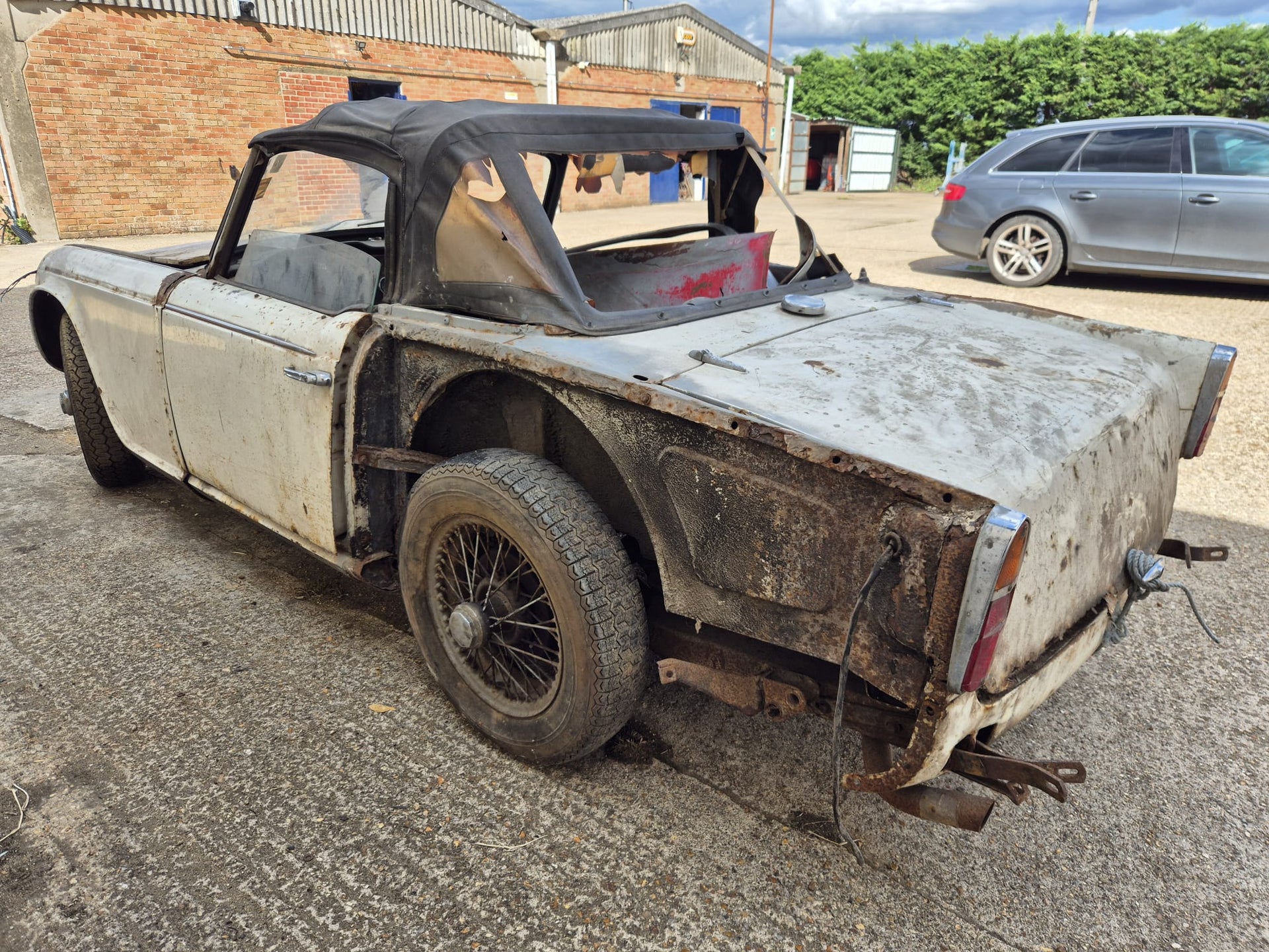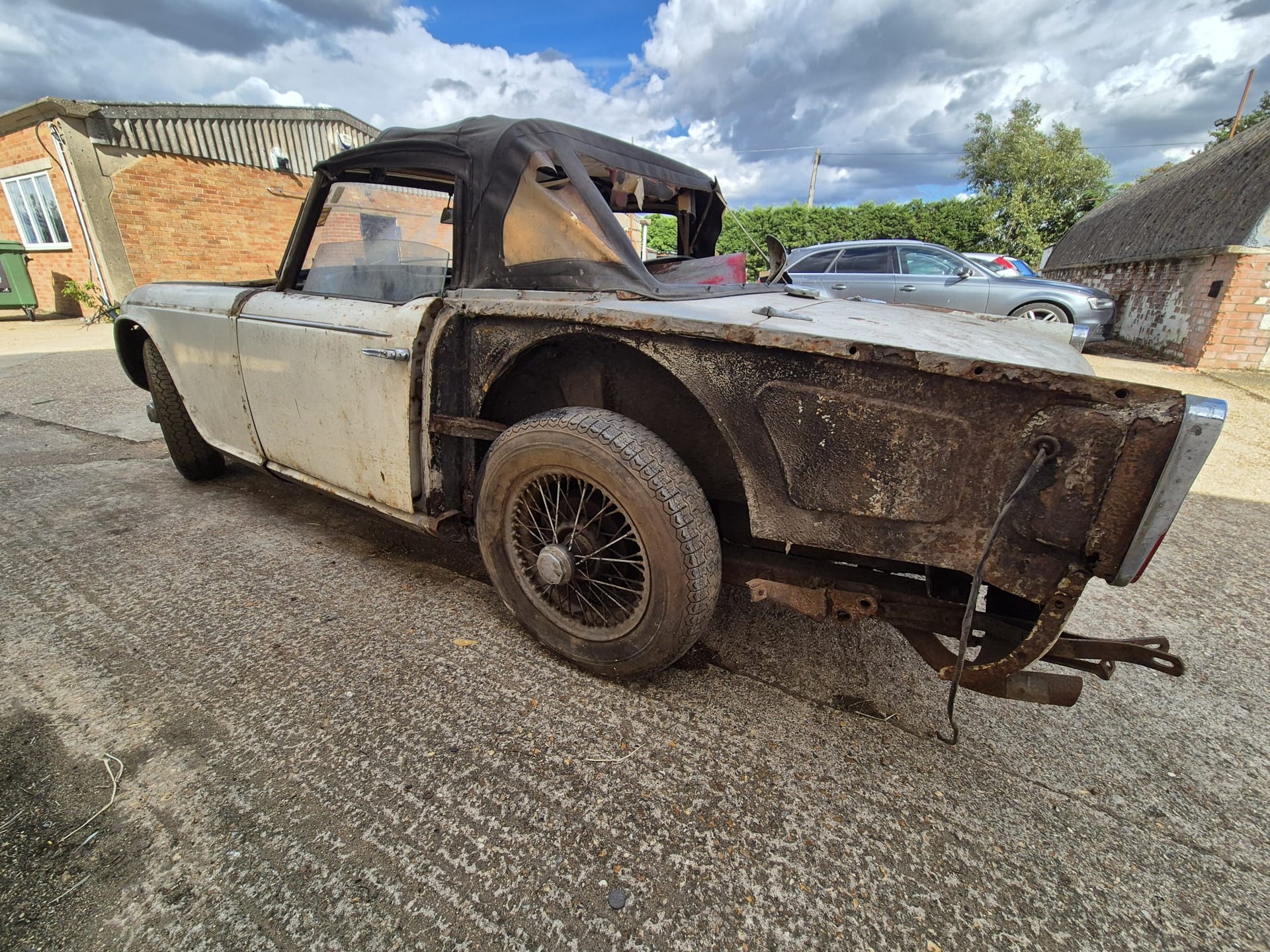 TR4A 1967 OVERRIPE FOR RESTORATION. CHASSIS IS RESTORABLE, AND AS YOU CAN SEE THE REAR OF THE BODY TUB IS QUITE BAD. 99% COMPLETE. OLD GREEN LOG BOOK AND ORIGINAL VIN NUMBER STILL ON CAR. TAKEN OFF THE ROAD IN 1976 AND DRY STORED SINCE. PLEASE PLEASE PLEASE NO IDIOTS, NO TIMEWASTERS, IT IS WHAT IT IS! £2500 IS THE FIRM PRICE OR WE WILL BREAK IT FOR PARTS (BE A SHAME BUT WE ALL HAVE BILLS TO PAY!!) FAIR PRICE ON DELIVERY ARRANGED.