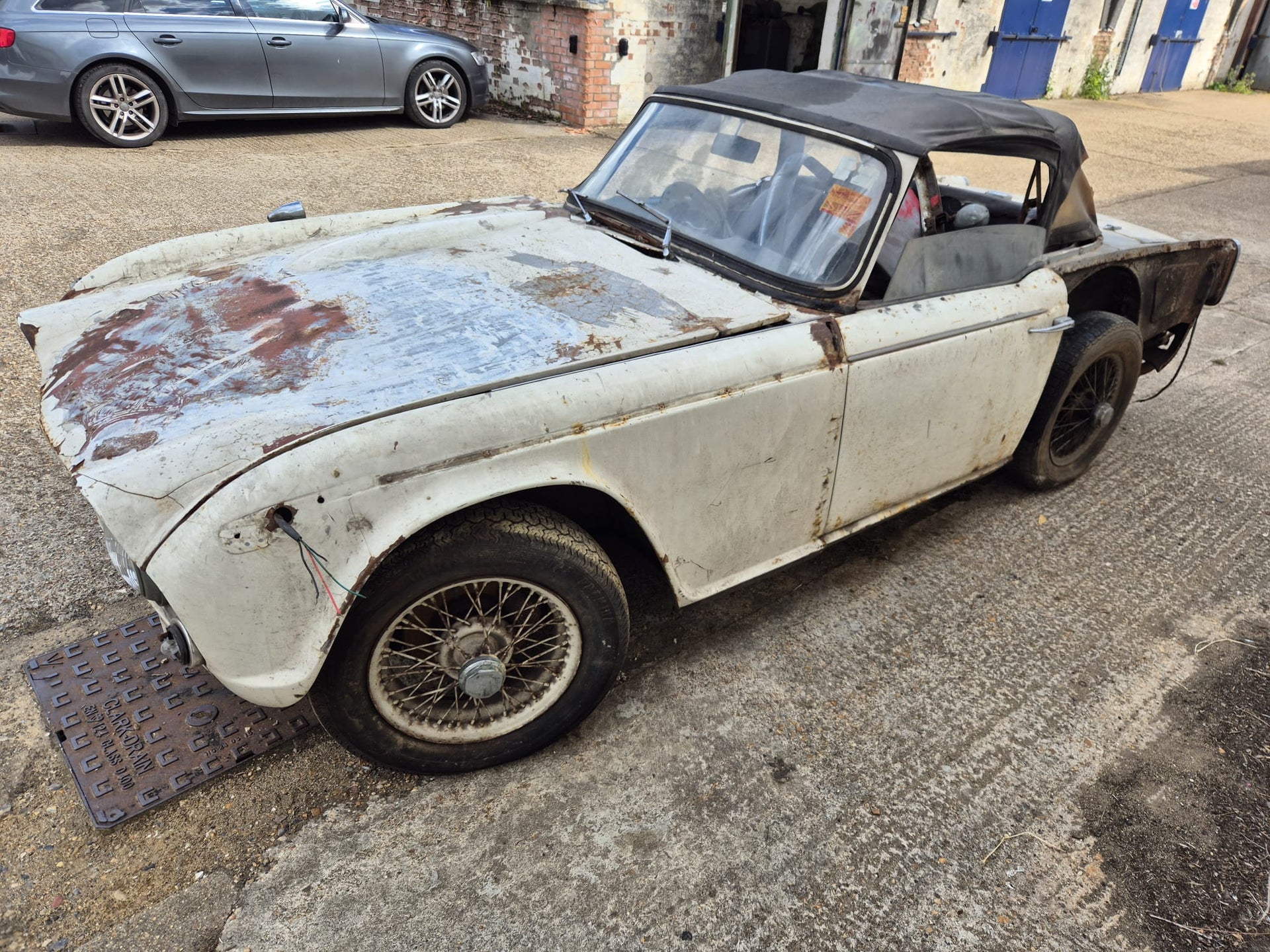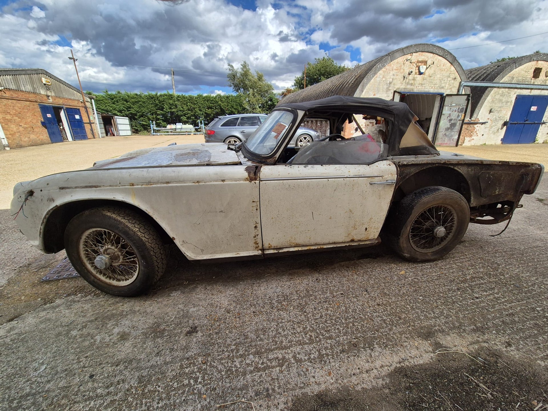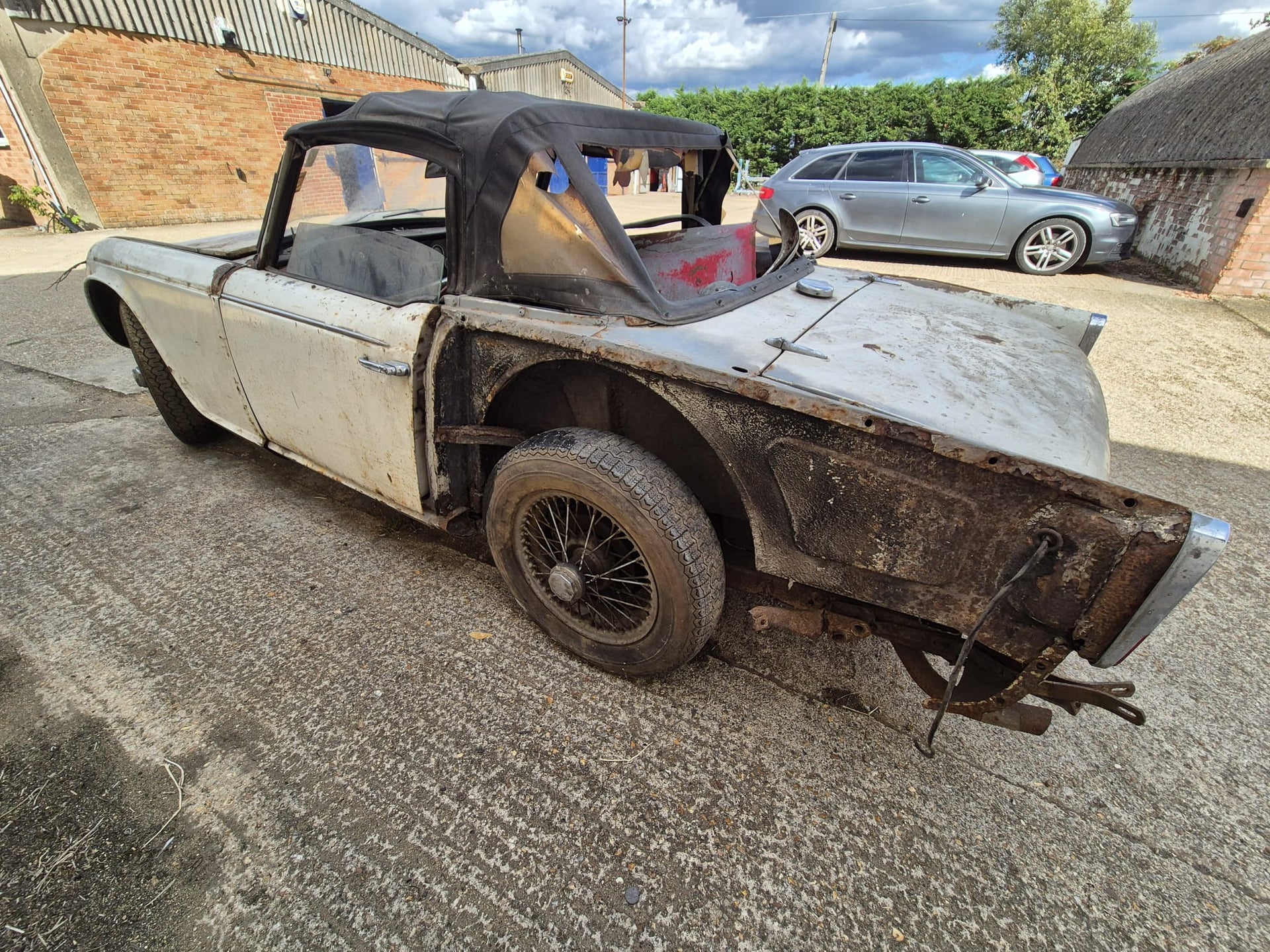 TR4A 1967 OVERRIPE FOR RESTORATION. CHASSIS IS RESTORABLE, AND AS YOU CAN SEE THE REAR OF THE BODY TUB IS QUITE BAD. 99% COMPLETE. OLD GREEN LOG BOOK AND ORIGINAL VIN NUMBER STILL ON CAR. TAKEN OFF THE ROAD IN 1976 AND DRY STORED SINCE. PLEASE PLEASE PLEASE NO IDIOTS, NO TIMEWASTERS, IT IS WHAT IT IS! £2500 IS THE FIRM PRICE OR WE WILL BREAK IT FOR PARTS (BE A SHAME BUT WE ALL HAVE BILLS TO PAY!!) FAIR PRICE ON DELIVERY ARRANGED.