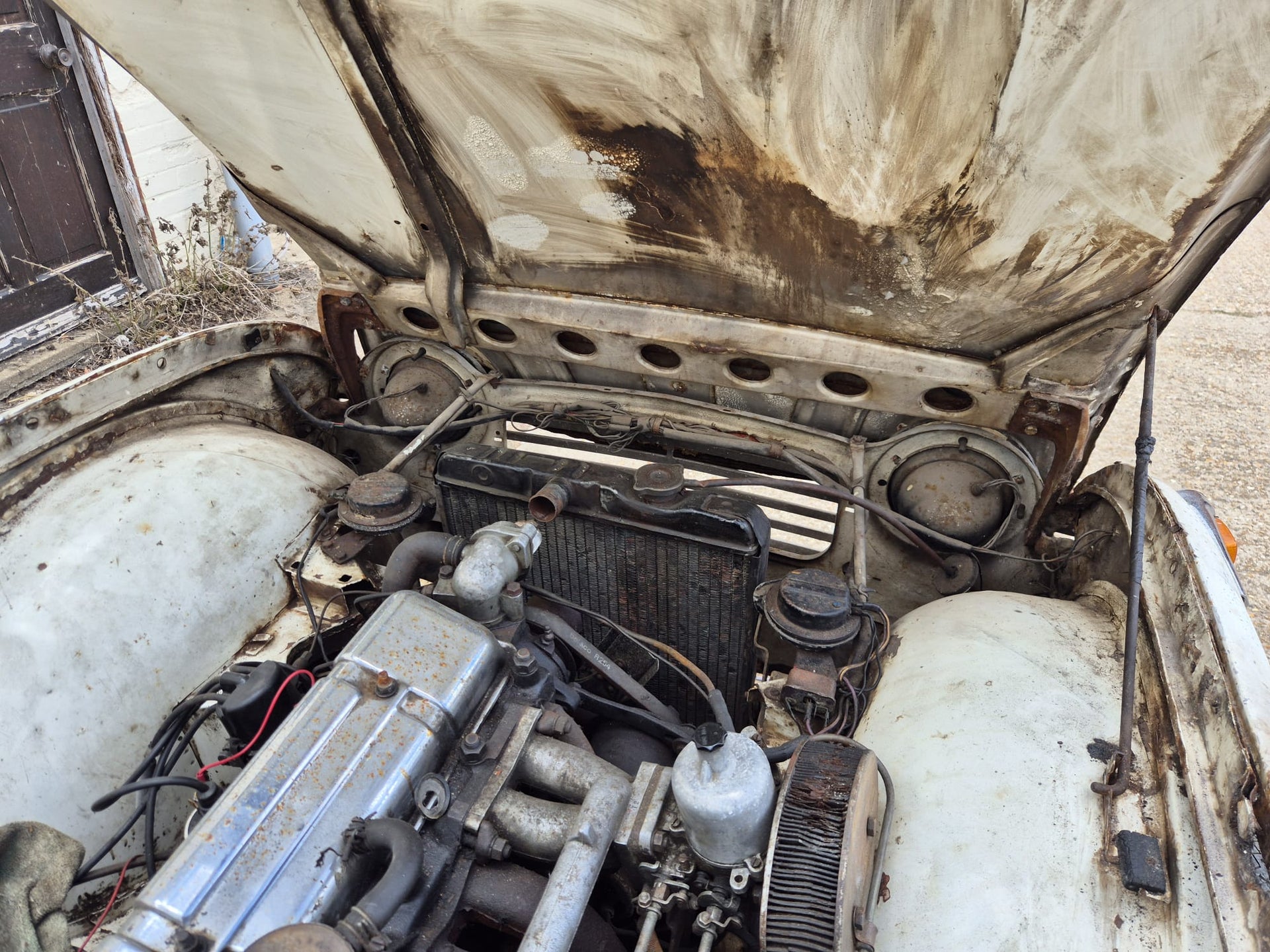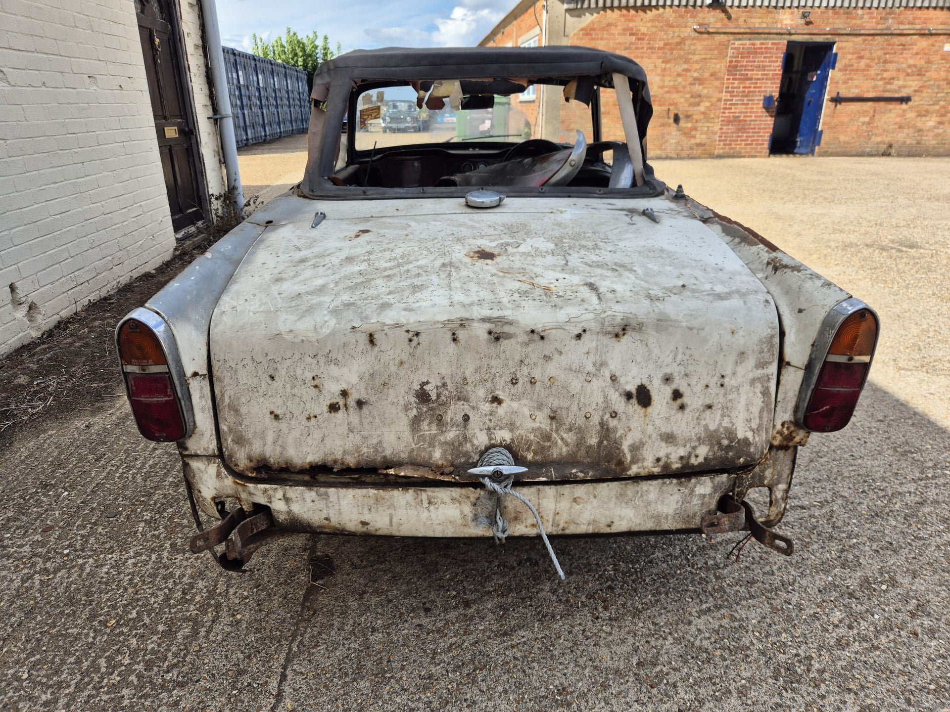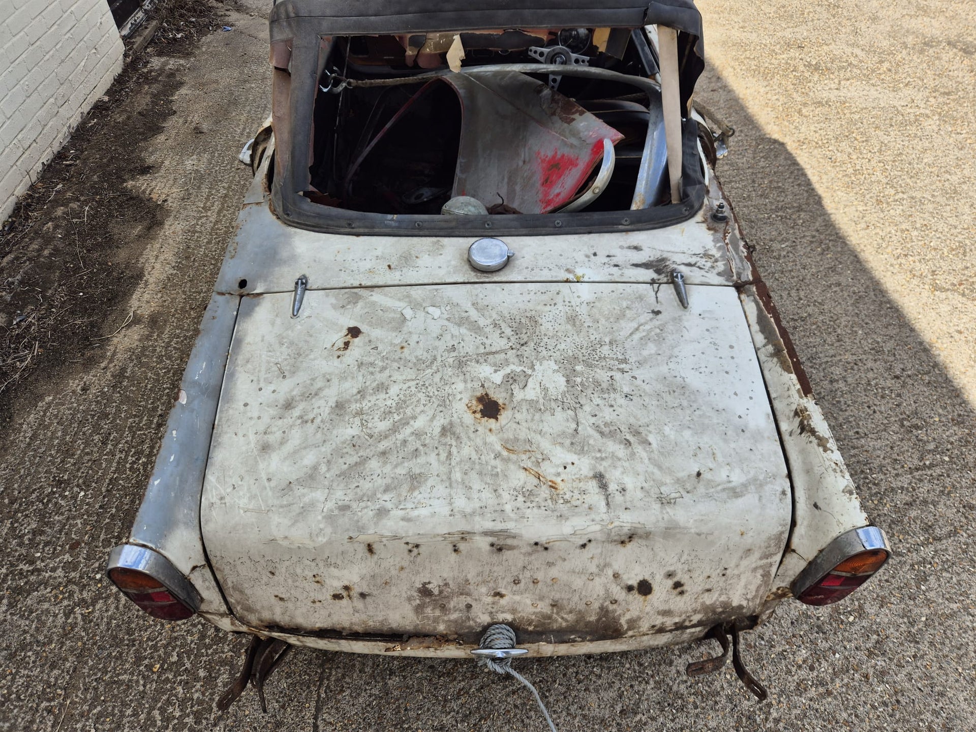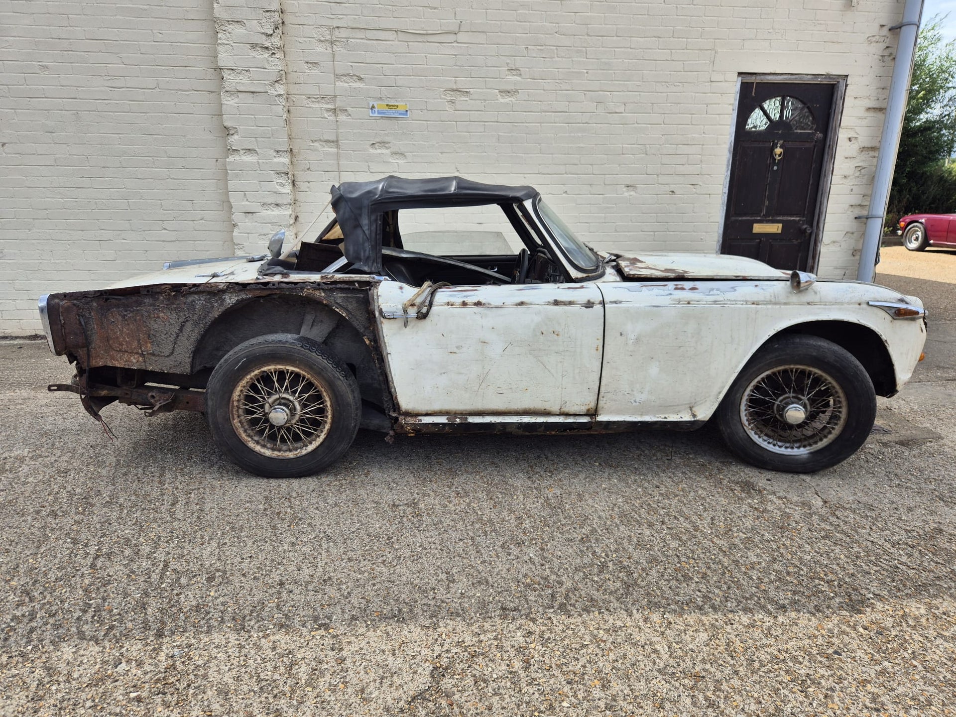 TR4A 1967 OVERRIPE FOR RESTORATION. CHASSIS IS RESTORABLE, AND AS YOU CAN SEE THE REAR OF THE BODY TUB IS QUITE BAD. 99% COMPLETE. OLD GREEN LOG BOOK AND ORIGINAL VIN NUMBER STILL ON CAR. TAKEN OFF THE ROAD IN 1976 AND DRY STORED SINCE. PLEASE PLEASE PLEASE NO IDIOTS, NO TIMEWASTERS, IT IS WHAT IT IS! £2500 IS THE FIRM PRICE OR WE WILL BREAK IT FOR PARTS (BE A SHAME BUT WE ALL HAVE BILLS TO PAY!!) FAIR PRICE ON DELIVERY ARRANGED.